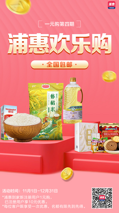 近日,遼寧東寶集團攜手浦發銀行優惠到家,為您推出【浦惠歡樂購】(1元購優惠活動)。 下載【浦惠到家APP】新注冊用戶即可參加1元購活動!