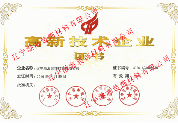 遼寧渤海裝飾材料有限公司《高新技術(shù)企業(yè)》證書